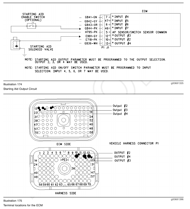 • Not OK – Temporarily connect a test ECM. Use the “Starting Aid Output Special Test” on ET to check the ECM. If the problem is resolved with the test ECM, install the suspect ECM. If the problem returns with the suspect ECM, replace the ECM. Verify that the repair eliminates the problem. STOP.