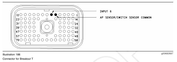 G. Alternately remove the jumper wire and then insert the jumper wire from terminal 5. At the same time, monitor the status screen on the electronic service tool.