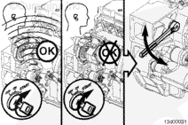 If the crankshaft will bar over, attempt to start the engine. If the starter motor cranks the engine, check the starter motor pinion gear and flywheel ring gear for damage.