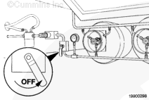 Make sure the fuel supply is shut off by turning the supply valve off as shown.