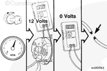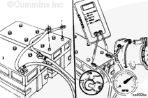 Operate the engine at high idle; and measure the alternator voltage output to the batteries with digital multimeter, Part Number 3377161. Refer to the alternator manufacturer’s specifications.