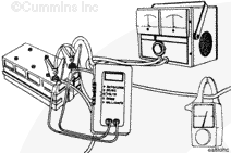 Clamp an induction pickup-type ampere-hour meter around the battery cable; or use the digital multimeter, Part Number 3377161, with the clamp-on current probe, Part Number 3823574.