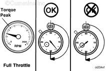 Do not operate the engine at full throttle below peak torque rpm (refer to engine dataplate for peak torque rpm) for more than 30 seconds. Operating the engine at full throttle below peak torque will shorten engine life to overhaul, can cause serious engine damage, and is considered engine abuse.