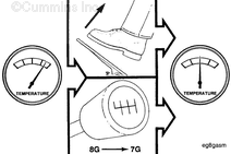 If an overheating condition starts to occur, reduce the power output of the engine by releasing the accelerator pedal or lever or shifting the transmission to a lower gear, or both, until the temperature returns to the normal operating range. If the engine temperature does not return to normal, shut off the engine, and refer to Troubleshooting Symptoms (Section TS), or contact a Cummins® Authorized Repair Location.