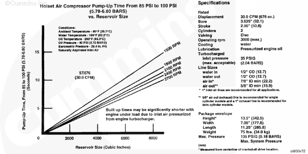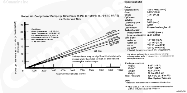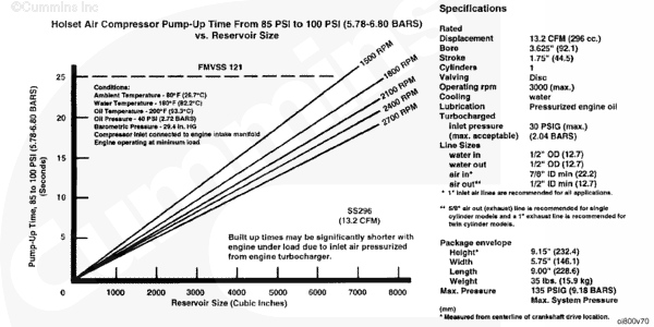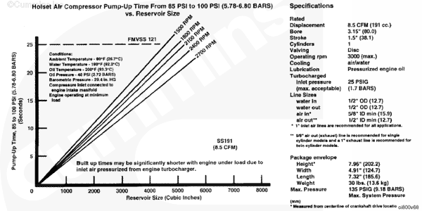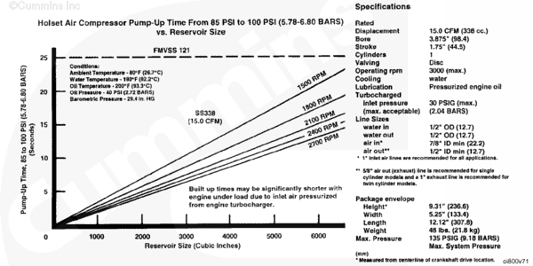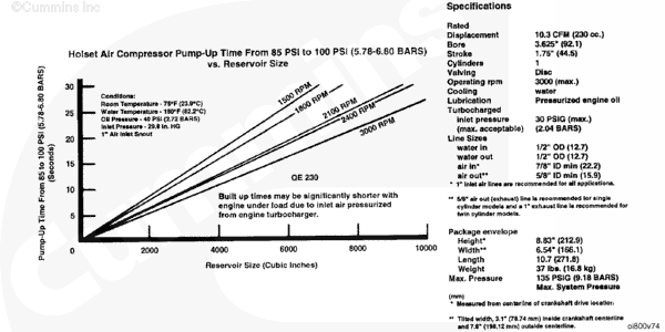The Holset® E-Type system air compressor is an engine drive, piston type compressor which supplies compressed air to operate air activated devices. The compressor operates continuously, but has a loaded and unloading operating mode. The operating mode is controlled by a pressure activated governor and the compressor unloading assembly.