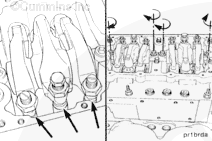 Remove the rocker lever shaft capscrews and the rocker lever shaft assemblies.