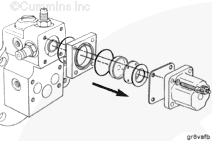 Install the fuel shield (2) and coil (1) on the front cover (8). Install a new o-ring and tighten the capscrews.