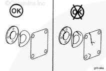 Put the spring washer (3) on the valve disc (4), cavity side up, in a position around the valve locator.