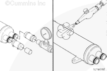 For those engine applications utilizing the low mount oil cooler arrangement, follow the same procedure.