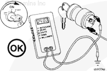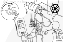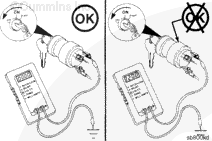 Connect the positive lead of digital multimeter, Part No. 3377161, to the starter switch terminal and the negative lead to the chassis or an engine ground location.