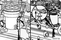 Use your hand to open the drain valve. Turn the valve counterclockwise approximately 3½ turns until the valve drops down 25.4mm [1 in] and draining occurs.