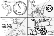 If the air compressor continues to pump (air pressure continues to rise), the unloader valve is malfunctioning and must be repaired or replaced. Refer to Air Compressor Unloader Valve, Procedure 012-013.