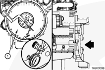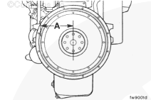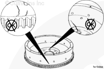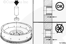 If the flywheel face runout is not within specifications, remove the flywheel. Check for nicks, burrs, or foreign material between the flywheel mounting surface and the crankshaft flange.