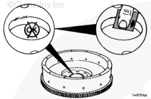 Install the contact tip of the indicator against the inside diameter of the flywheel bore, and set the dial indicator at zero.