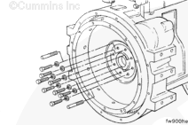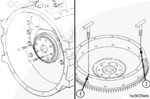 Remove the remaining six flywheel mounting capscrews.