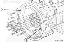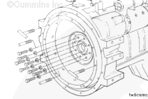 NOTE: If a clutch is used in the equipment, the threads in the clutch pressure plate mounting capscrew holes can be metric or standard. Be sure to use the correct capscrews.