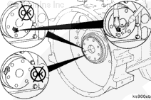 Install two M12 x 1.25 x 90-mm guide pins into the crankshaft flange 180 degrees apart.