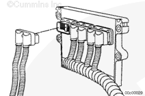 Connect the OEM wiring harness to the ECM. Refer to Procedure 019-071 in the Troubleshooting and Repair Manual CM870 Electronic Control Systems Signature and ISX Engines, Bulletin 4021334.