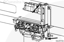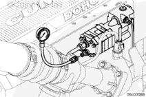 Install a pressure gauge, Part Number 3824877 (275 kPa [400 psi]), on the rail fuel pressure Compuchek™ fitting located on the IFSM to measure the fuel pressure after the filter.