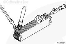 Do not allow dirt or foreign material to enter the oil cooler element passages when cleaning. Engine damage can result.