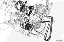 The belt tensioner is spring loaded and must be pivoted away from the drive belt. Pivoting in the wrong direction can result in damage to the belt tensioner or cause personal injury.