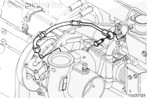 Install the turbocharger coolant return hose to the top of the turbocharger and the thermostat housing. Tighten the fittings.