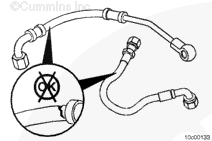 Install the turbocharger coolant supply hose to the bottom of the turbocharger and the lubricating oil filter head. Tighten the fittings.