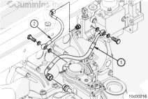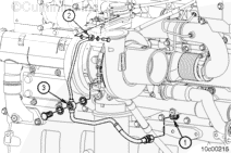 Remove the turbocharger coolant supply line from the bottom of the turbocharger and the lubricating oil filter head.