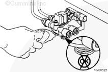 Air pressure must be released from the system before removing the turbocharger control shutoff valve. The turbocharger control shutoff valve is under pressure and can cause personal injury.