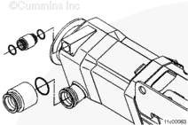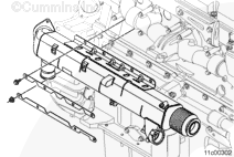 Keep all protective caps on the EGR cooler in place while grinding clearance in the upper mounting bracket. Failure to do so could cause progressive damage to the engine once the EGR cooler is installed. It’s important to prevent any debris from entering the cooler.