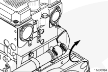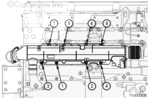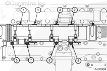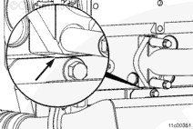 Inspect for an interference fit between the upper EGR cooler mounting bracket and the lower portion of the exhaust manifold flange. If this interference is present, grind a clearance on the upper EGR cooler mounting bracket in the area shown in the illustration.