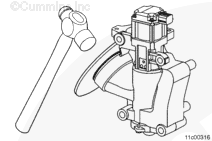 Make sure to support the EGR valve by hand before removing the mounting capscrews. If the EGR valve is not supported, it can fall off of the engine, causing damage to the EGR valve and actuator.
