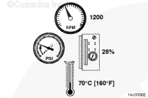Maintain the engine speed at which advertised horsepower is developed. Move the throttle lever to its fully opened position, and increase the dynamometer load until 100 percent advertised horsepower of the engine is developed.