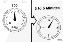 Do not shut off the engine immediately after the run-in is completed. Allow the engine to cool by operating it at 700 to 900 rpm for a minimum of 3 to 5 minutes to avoid internal damage. This allows the turbocharger and other components to cool.