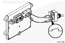 The ON/OFF toggle switch is used to activate or disable the cruise control operation and PTO operation. The cruise control/PTO ON/OFF switch circuit consists of the cruise control ON/OFF switch signal, the switch return, and the OEM cab-mounted toggle switch.