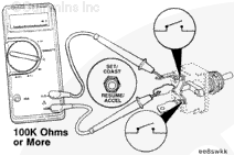 The multimeter must show an open circuit (100k ohms or more) when the switch is held in the RESUME/ACCEL position and when it is released. If the circuit is not open, the switch has failed.