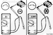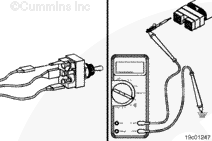 The multimeter must show an open circuit (100K ohms or more). If the circuit is not open, there is a short circuit to ground in the cruise control/PTO resume/accelerator switch signal circuit, provided the idle adjust switch has been previously checked.