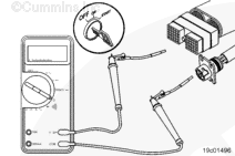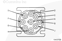 If more than 10 ohms are measured in any of these steps, there can be an open circuit in the SAE J1939 datalink positive (+) pin, the SAE J1939 datalink negative (-) pin, or the SAE J1939 (shield) pin, or the polarity is