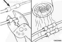 Install the proper-size ring terminal on the bare wire. The ring terminals that are included in the wiring repair kit, Part Number 3164572, are as follows: