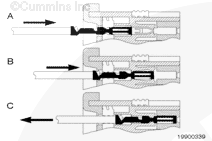 Remove the damaged contacts, rotate the contact wire back and forth over a half turn (¼ turn in each direction). Gently pull the wire until the contact is removed.