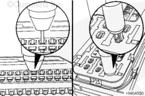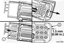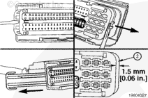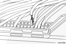 If the wire is difficult to remove, do not pull hard on the wire, otherwise, the locking tang of the terminal will stick or the terminal will pull off the wire and remain in the connector.