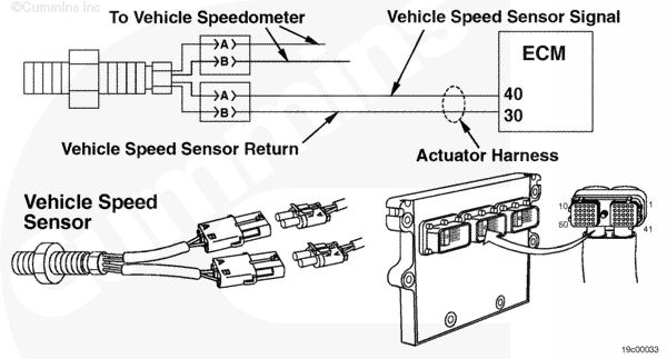 The vehicle speed sensor (VSS) uses two separate coils of wire to count gear teeth as they pass in front of the sensor. One coil is used by the ECM to sense vehicle speed. The other is sometimes used by the OEM to send a vehicle speed signal to the speedometer.