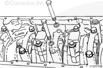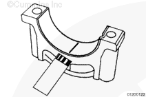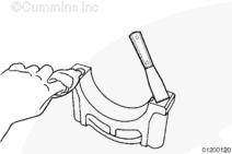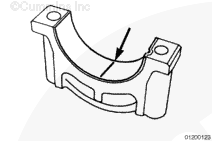 Fretting, typically occurs on main bearing caps number 2 and number 6. However, main bearing caps numbers 3, 4, and 5 are also at risk of fretting; therefore, inspection of main bearing caps number 2 through number 6 can be necessary. The inspection is conducted to determine which main bearing cap requires the Plastigage® procedure.