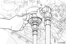 Operate the engine at idle speed for 3 minutes to inspect for leaks at the filter head adapter.