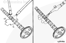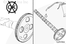 After the camshaft has been steam cleaned, do not touch the machined surfaces with bare hands. This will cause rust to form, which will damage the camshaft. Lubricate the camshaft with clean 15W-40 oil before handling.