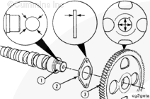Rotate the camshaft to align the holes in the camshaft gear with the thrust plate capscrew holes in the cylinder block.