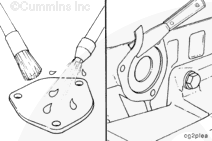 Align the capscrew holes in the thrust plate with the cylinder block capscrew holes.