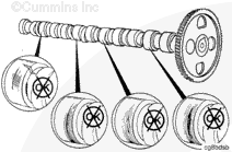 Refer to Camshaft Reuse Guidelines for engines with crowned rollers, Bulletin 3666052 .