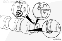 Inspect the thrust surface of the camshaft for grooves or heavy wear.