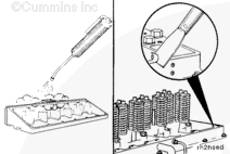 Inspect the rocker housing gasket for cuts or damage on the portion of the gasket that seals around the intake ports. Damage to the gasket can cause high blowby.